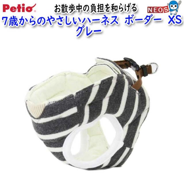 ペティオ 7歳からのやさしいハーネス ボーダー XS グレー