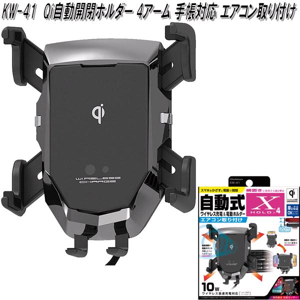 カシムラ KW-41 Qi自動開閉ホルダー 4アーム 手帳対応 エアコン取り付け KW41【お取り寄せ商品】カー用品 車載用充電器 スマートフォン iPhone アイフォン ホルダー