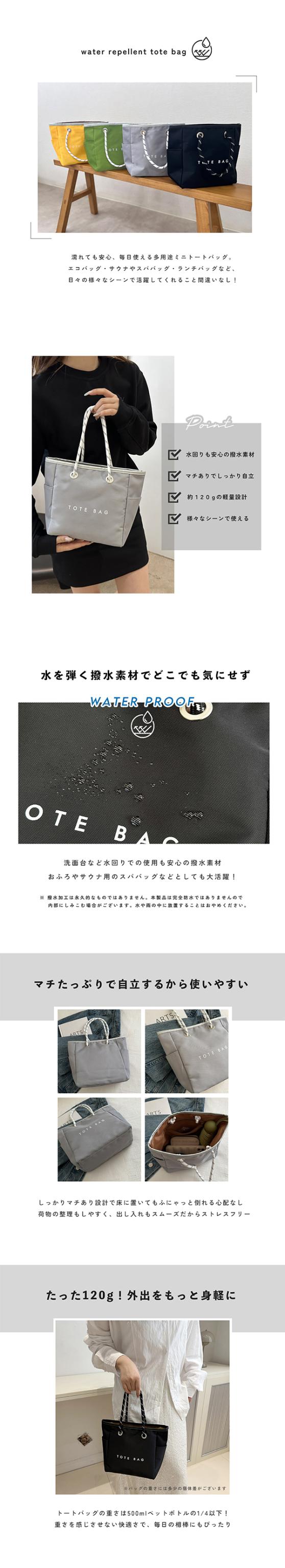 トートバッグ レディース 軽い 軽量 ミニ ナイロン 撥水 サウナ スパ お風呂 銭湯 ジム ランチバッグ 通勤 バック シンプル 肩掛け ポケット ファスナー付きポケット サイドポケット マチあり トートバック カバン 仕事 手提げ ミニバッグ