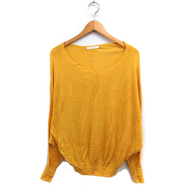 【中古】アフターオール after all アシンメトリーネック ニット セーター 長袖 ドルマンスリーブ 無地 M イエロー 黄