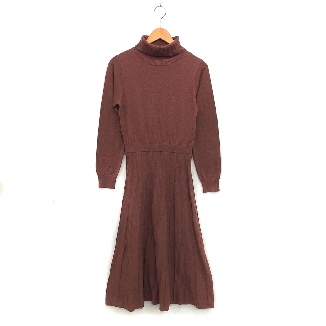 【中古】アンデミュウ Andemiu ニット タートルネック ワンピース フレア マキシ丈 リブ ストレッチ 長袖 F ブラウン