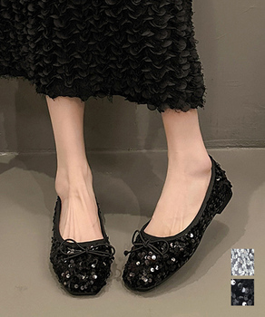 スパンコールが華やかさと遊び心を添えるバレエシューズ。