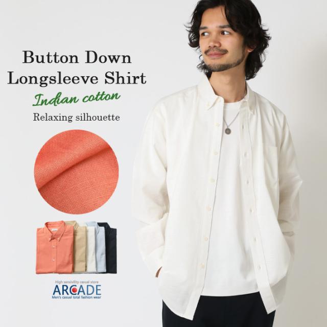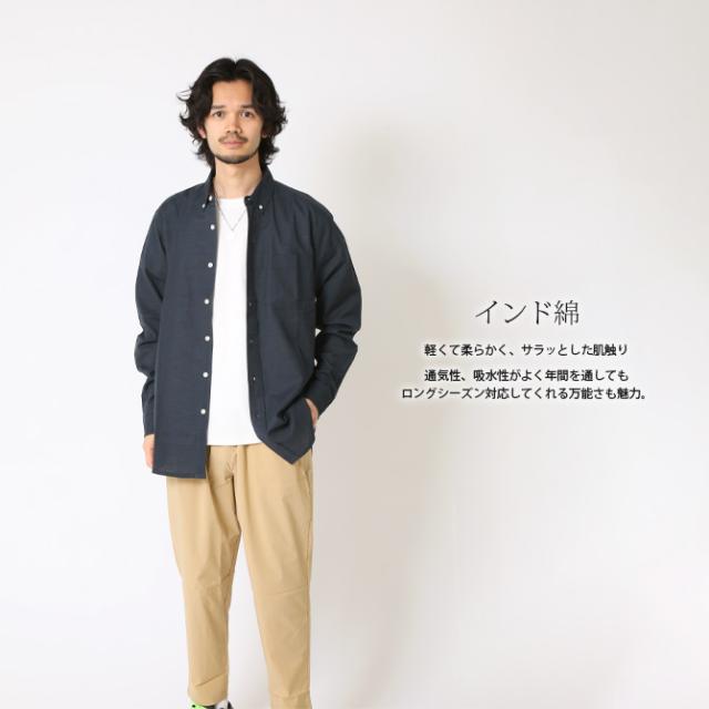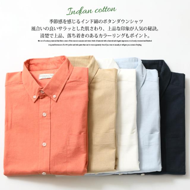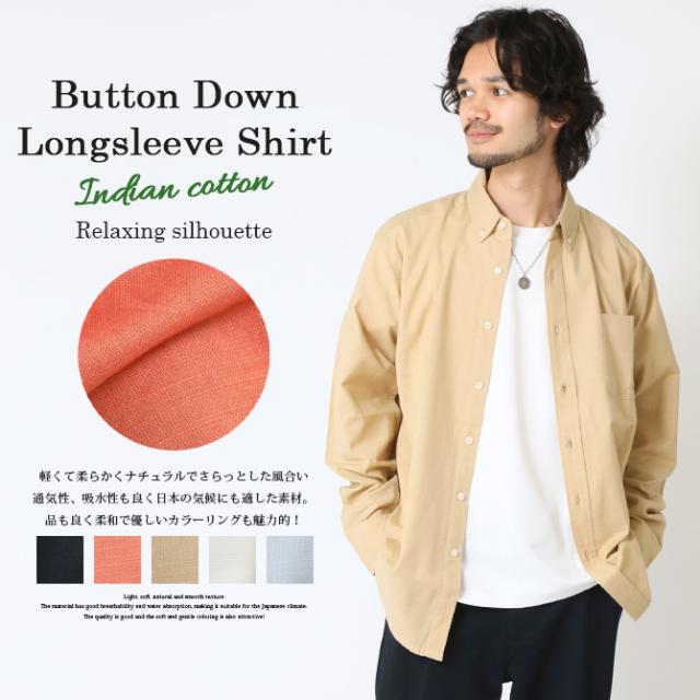 ボタンダウンシャツ メンズ 長袖シャツ メンズ無地シャツ インド綿 長袖カジュアルシャツ