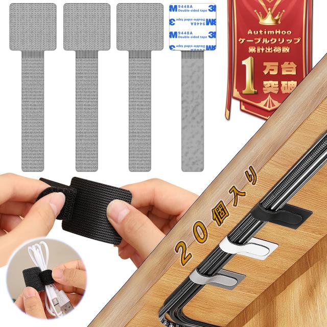 ◆商品名:【整理収納のプロ監修】AutimHoo ケーブルクリップ 20個入り ケーブルホルダー マジックテープ 強力粘着 多機能 ケーブルバンド 3.5×15c