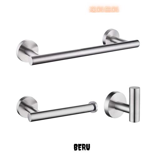 KWQKEM 3ピースセット【タオルバー&トイレットペーパーホルダー&ローブフック】ステンレス タオル掛け タワー 風呂収納 壁掛けフックバ