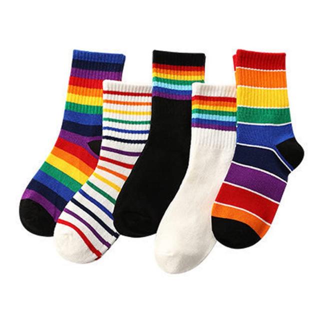 オシャレデザイン:とっても可愛くオシャレなレインボーボーダー柄のソックスです♪レインボー柄がすごく目立ちます♪ 男の子も女の子もでご使用いただけます♪