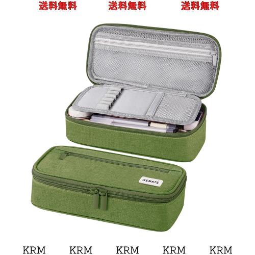 WEMATEペンケース 大容量 筆箱 横開き 2層 シンプル 多機能 おしゃれ-ジッパー ペンホルダー付き 強力な分類と収納力 ガジェットポーチ