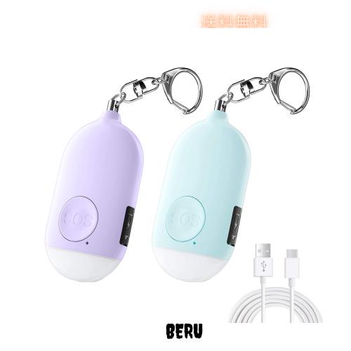 防犯ブザー【2個セット 紫+青】 LEDライト付き 防犯アラーム USB充電式 大音量130dB 防水 防犯 ブザー 小学生 女の子 男の子 女性 大人