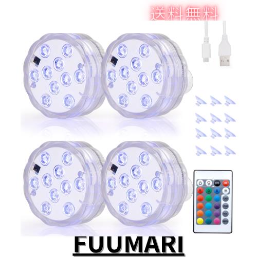 LED潜水ライト RGBリモコン付き USB充電式 バスライト 水中ライト 配線不要 水槽照明 お風呂 水族館 花瓶 庭 ガーデン 池 結婚式 パーテ