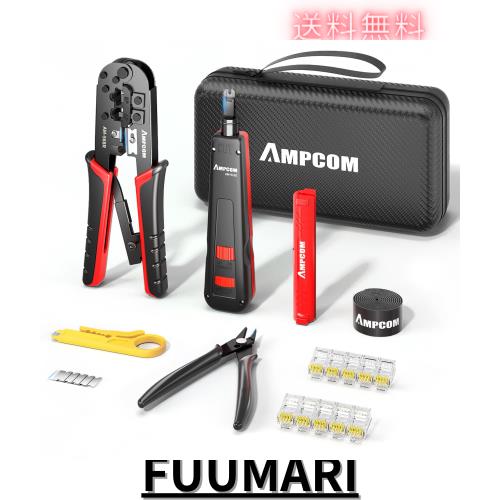 AMPCOM LANケーブル自作工具キット 7点工具セット圧着ペンチ プチダウン工具 外皮むき工具 CAT6 RJ45コネクタ 収納ケース付き