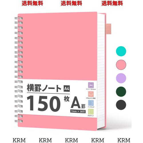 【サイズ】横21.5cm × 縦27.9cm、ノートA4 、A罫(7mm)36行、考え事に使える横罫300ページ(150枚)のノートです。