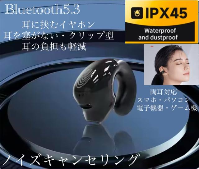 4 イヤホン ワイヤレスイヤホン Bluetooth5.3 IPX5 空気伝導イヤホン クリップ型 防水 耳掛け スピーカー マイク 片耳 USB 充電 超軽量 テレワーク