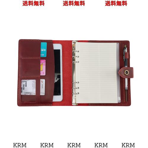 システム手帳 A5 革 2024年 ミニ6穴 リングバインダーノート レザーカバー 手縫い 手作り オリジナル メモ帳 カード収納 PVCポケット/ペ