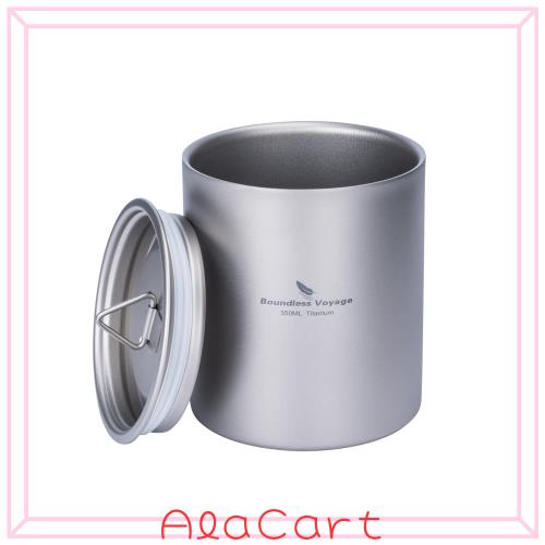 Boundless Voyage チタンマグカップ 蓋付き 350ml ダブルウォール アウトドア用マグカップ 保温 保冷 超軽量 錆びない スタッキングマグ