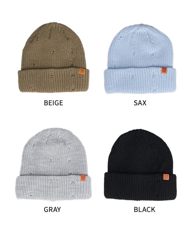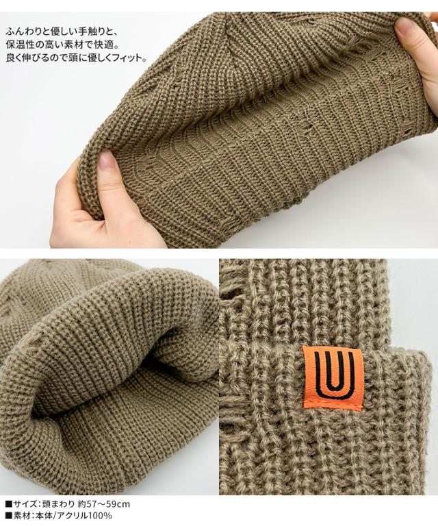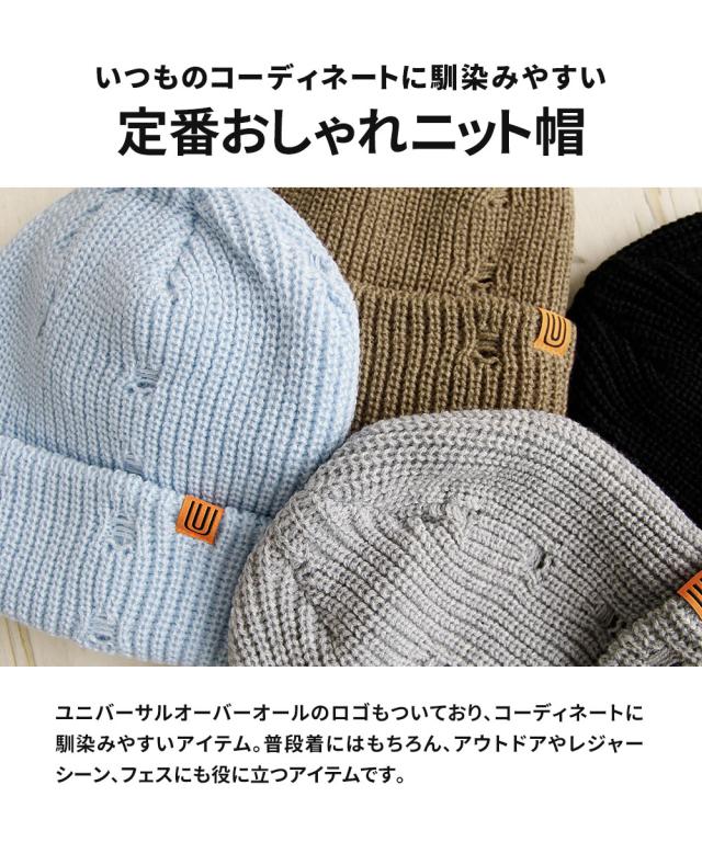 ユニバーサルオーバーオール ニット帽 メンズ レディース ワッチキャップ ビーニー 帽子 秋 冬 ダメージ カジュアル シンプル お洒落 おしゃれ アウトドア 釣り キャンプ レジャー フェス 登山 アメカジ 黒 ブラック ベージュ グレー ブルー UNIVERSAL OVERALL UO dw1729