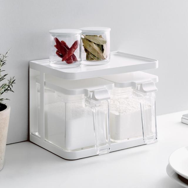 調味料ポット 700ml 2点セット マグネットラック付き フォルマ R ( 調味料入れ セット ラック 保存容器 キャニスター 密閉 2個組 ケース付き ワンタッチ 片手 ロック プラスチック スプーン付き 調味料スタンド 浮かせる収納 )