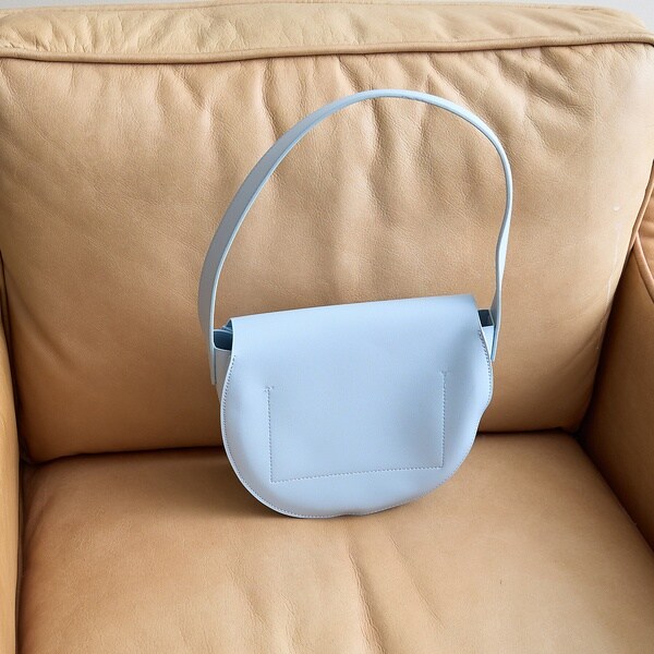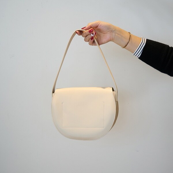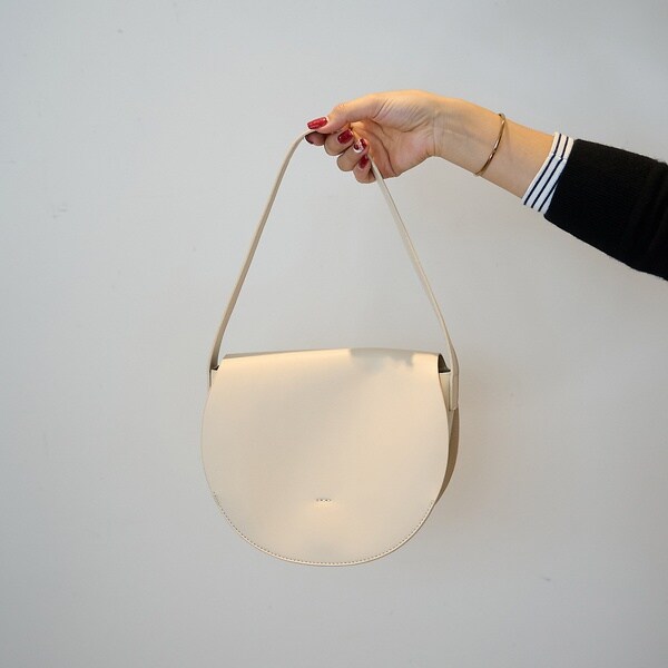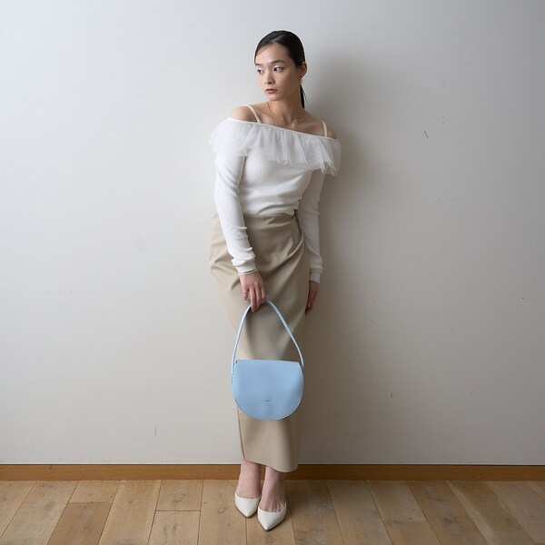 半円のコロンとしたシルエットが魅力のショルダーバッグ。