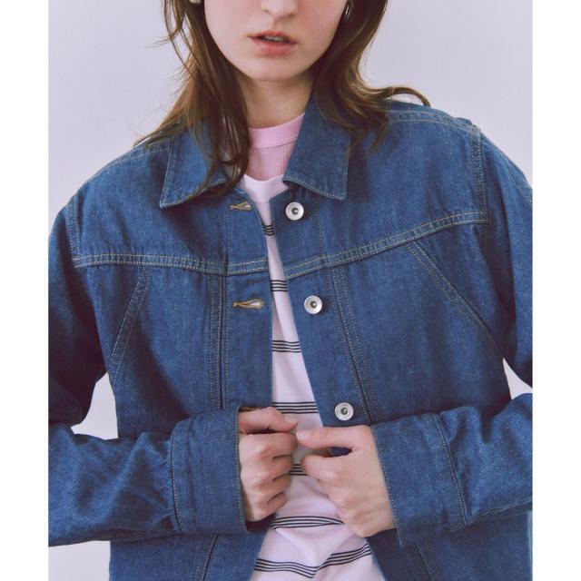大きな胸パッチポケットがポイントのデニムブルゾン。