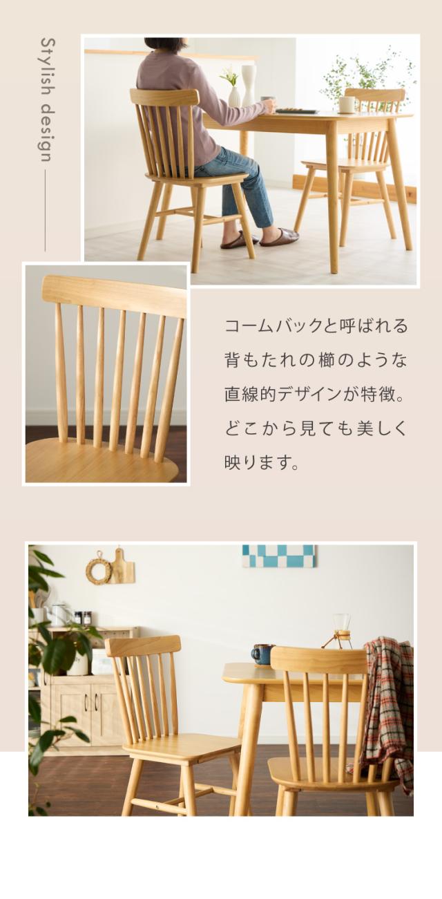 ダイニングチェア 2脚セット ウィンザーチェア 背もたれ 木製 イス チェア 天然木 おしゃれ 北欧 カフェ ダイニング チェア チェアー 2点セット 肘なし 肘無し 食卓椅子 2脚 コームバック お