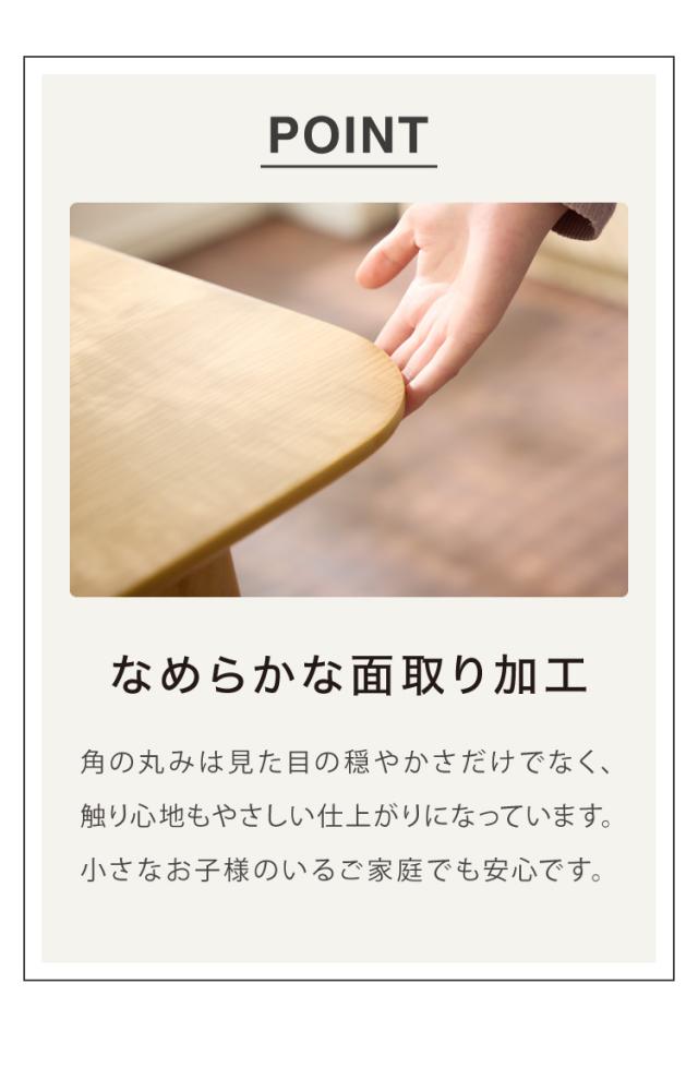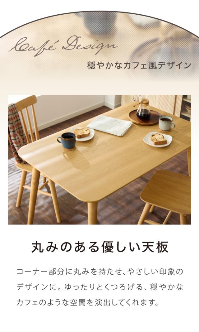 ・角が丸みを帯びた形がかわいいダイニングテーブルです。