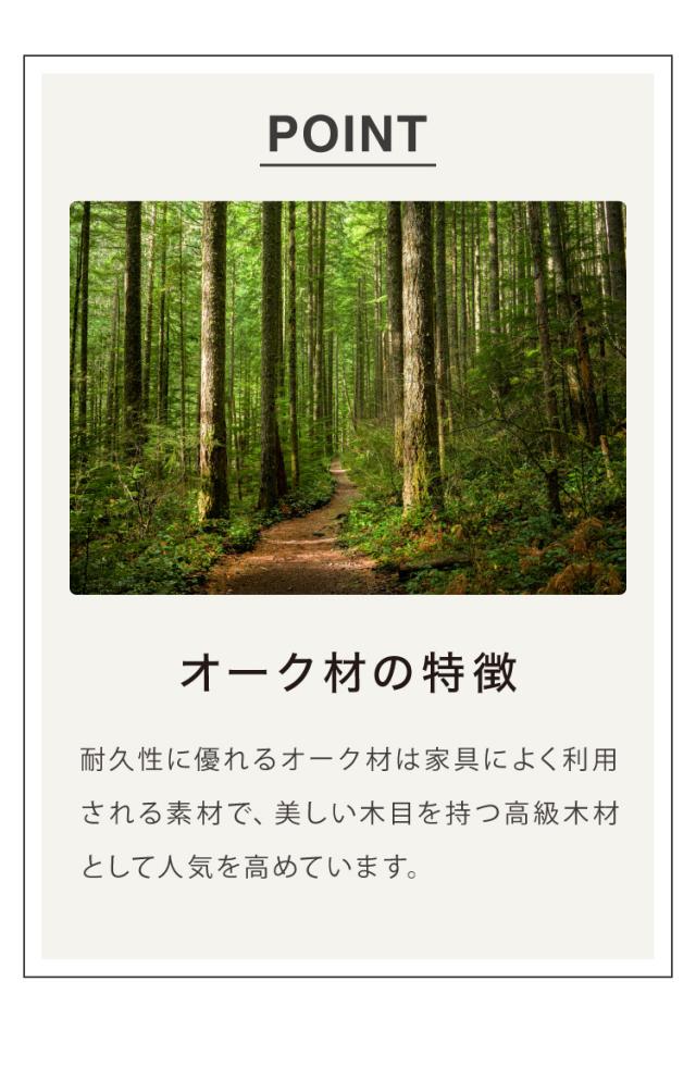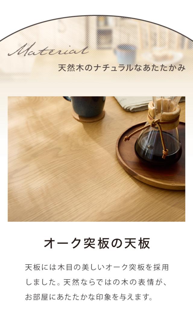 ・天板には天然木のオーク材を使用した自然な仕上がり。