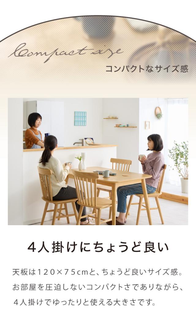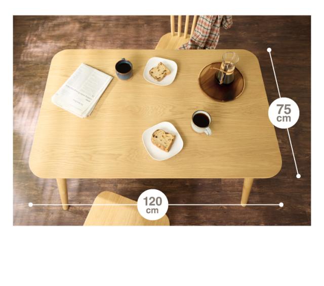 カフェ風 ダイニングテーブル 天然木 幅120 奥行75 4人掛け 木目調 ナチュラル 木製 120×75cm リビング ダイニング パソコンデスク つくえ 机 デスク テーブル 丈夫 食卓テーブル【送料無料】
