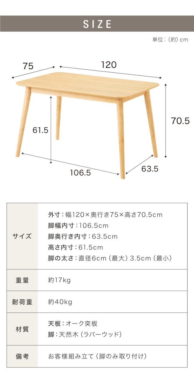・4人で使うのにちょうどいい幅120×奥行75cmのサイズです。