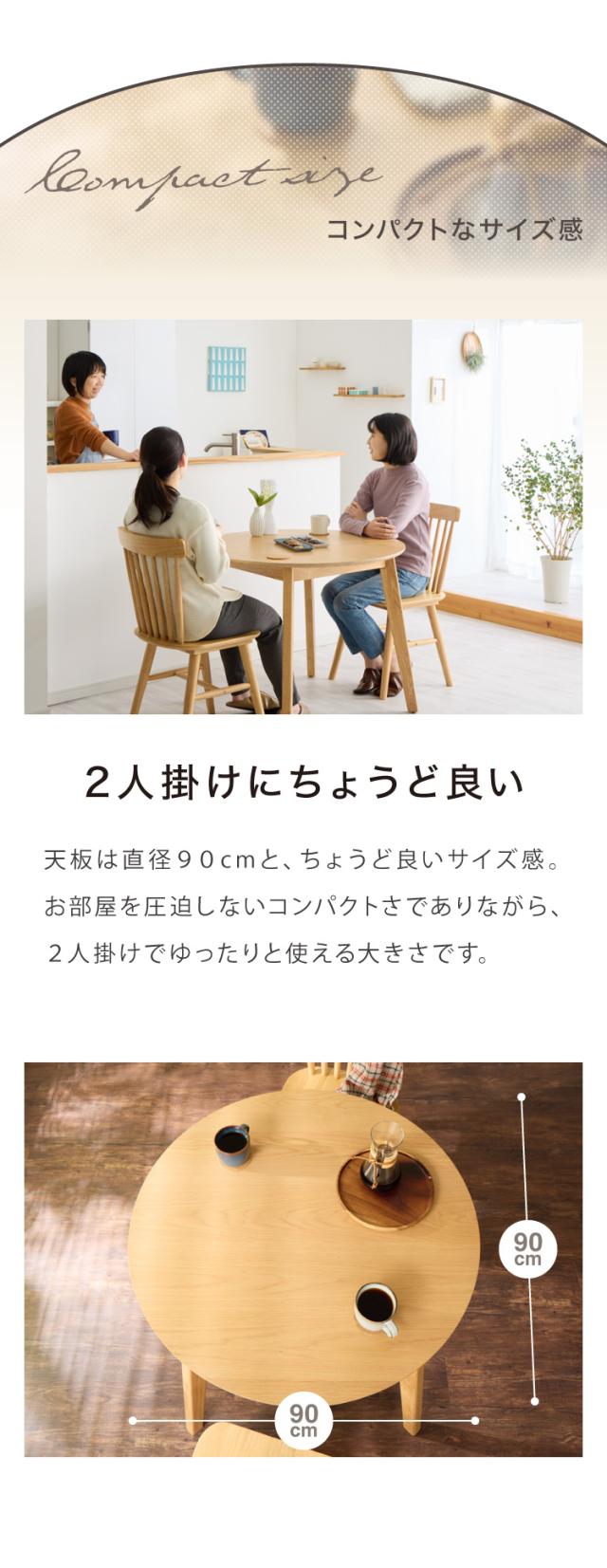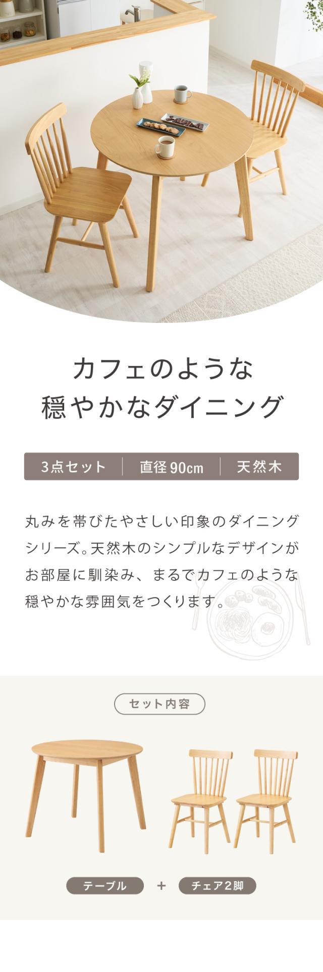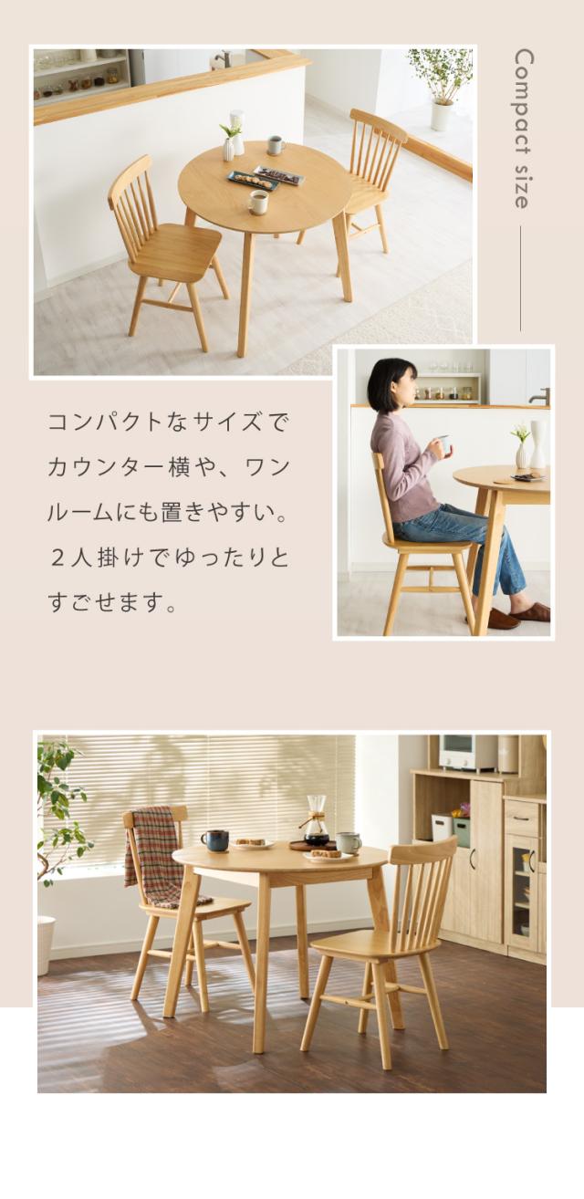 カフェ風 ダイニング3点セット 2人掛け 円形 90cm ダイニングチェア ウィンザーチェア 天然木 オーク突板 ダイニング テーブル カフェテーブル ダイニングチェアー ナチュラル 木製 北欧(代引