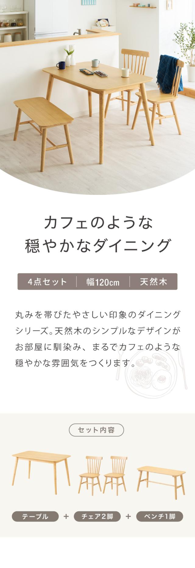 4点セット/テーブル 120×75cm+ベンチ+チェア2脚