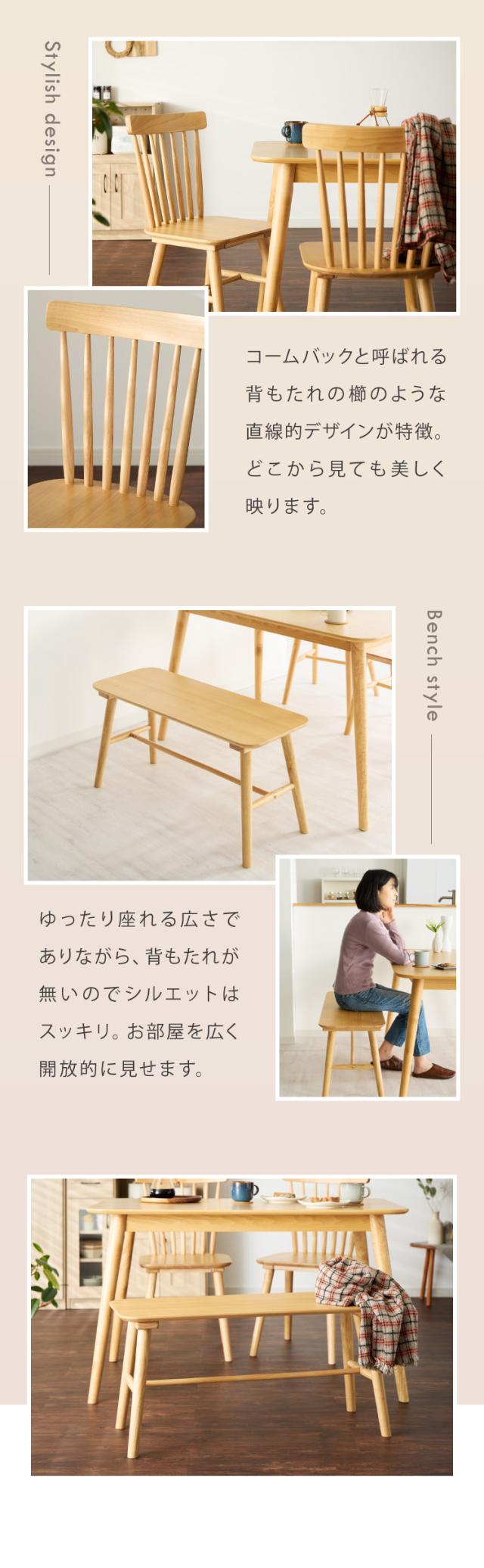 カフェ風 ダイニング4点セット 4人掛け 120×75cm ダイニングチェア ウィンザーチェア 天然木 オーク突板 ダイニング テーブル カフェテーブル ダイニングチェアー ナチュラル 木製 北欧(代引