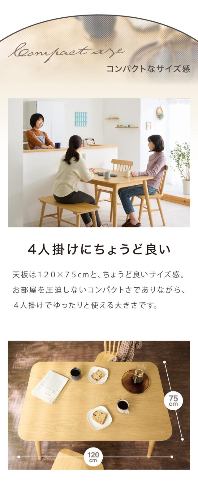 ・テーブルは4人で使用するにはちょうどいいサイズの120×75cm