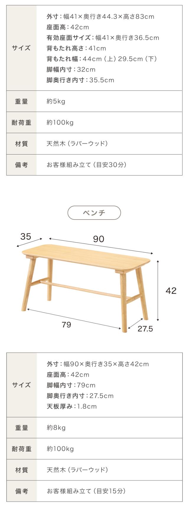 テーブル 75×75cm/単品 | テーブル 120×75cm/単品 | ベンチ/単品 | チェア/2脚セット |
