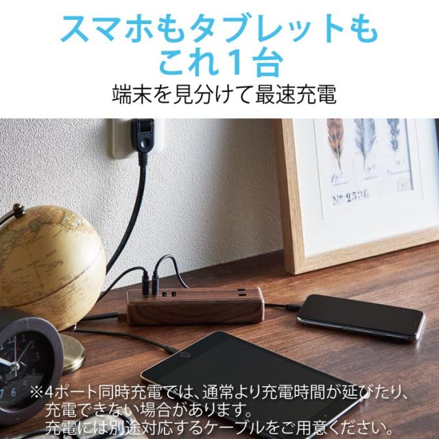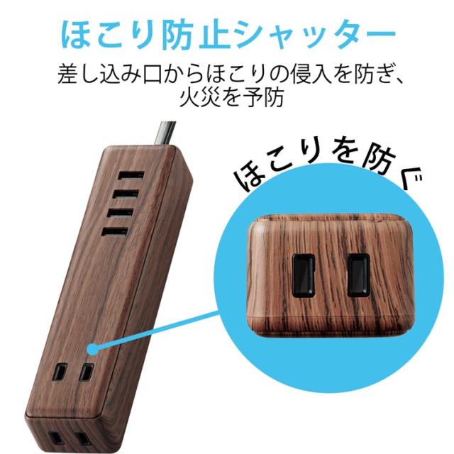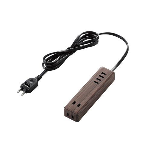 エレコム 延長コード コンセント×2個口 USBA×4ポート ウォールナット ECT-0415W(1個)[OA商品]