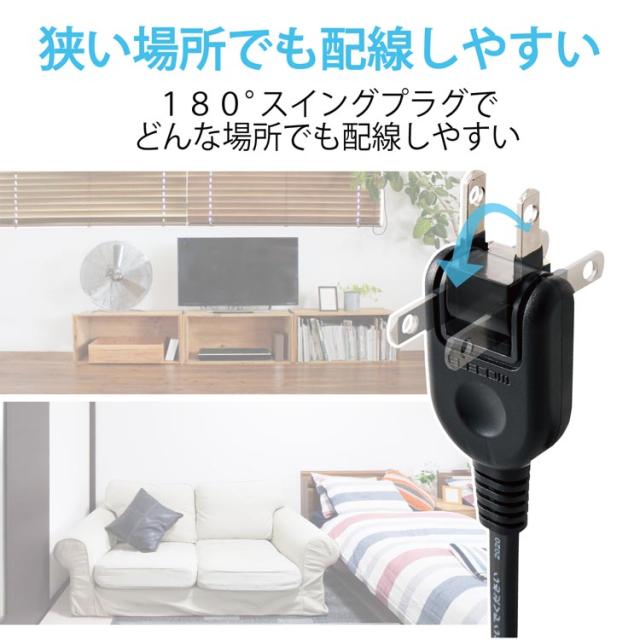 ●狭い場所でも配線しやすい180度スイングプラグを採用しています。