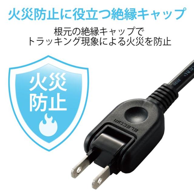 ●2ピン式のACプラグ根本には絶縁キャップがついており、トラッキング現象による火災の防止に役立ちます。