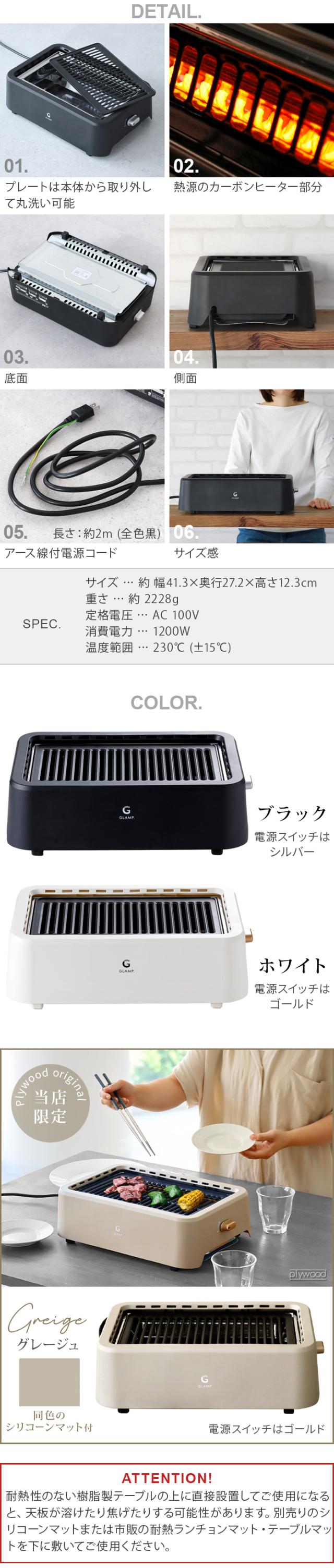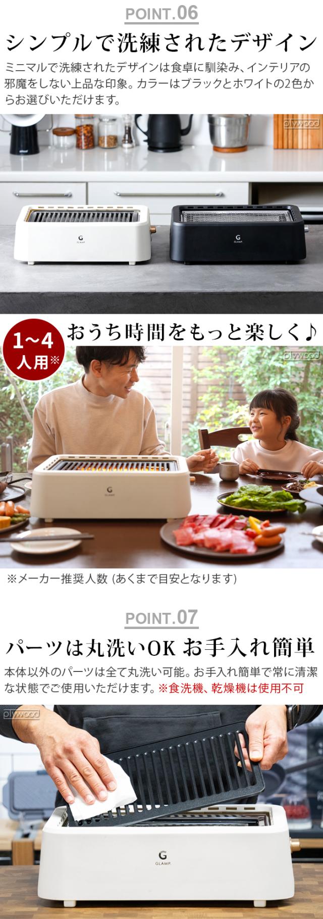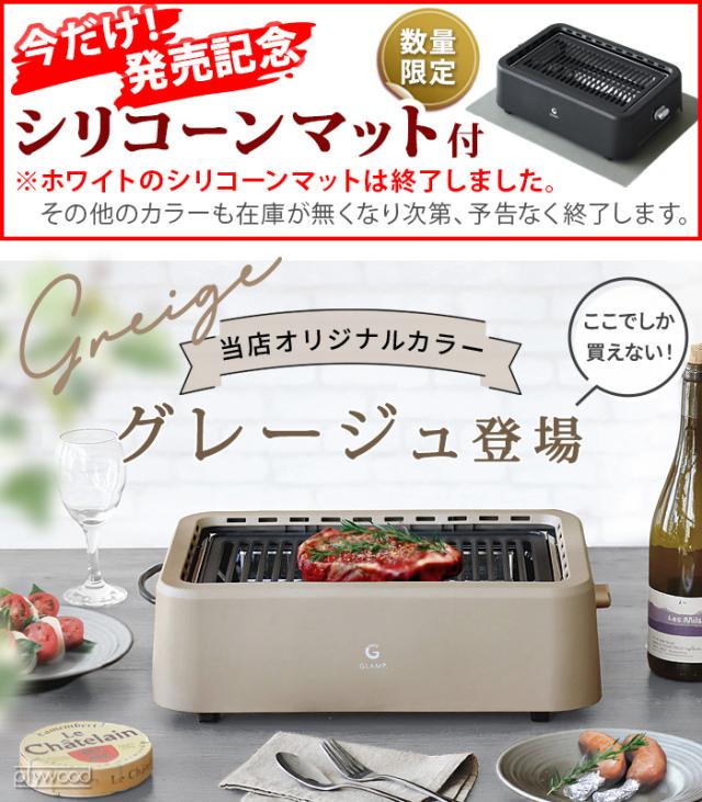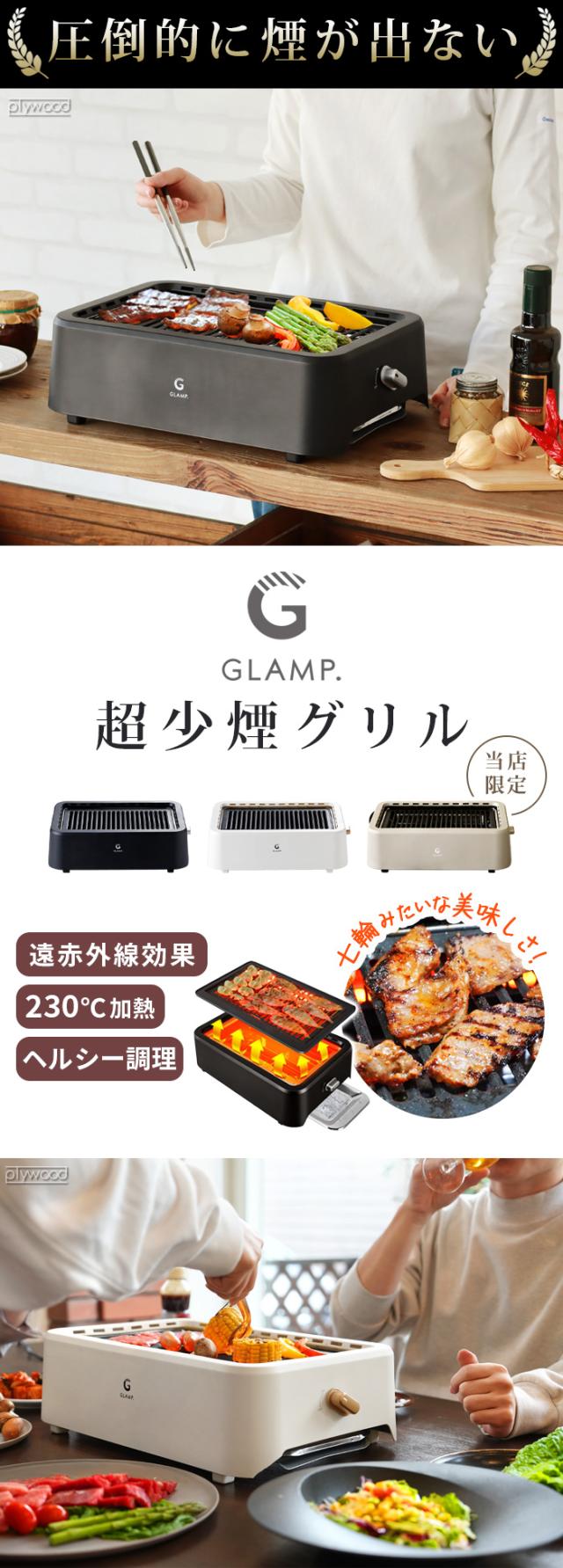 \当店限定カラー/ 【選べる2大特典付】 マット付 減煙 ホットプレート 焼肉 バーベキュー コンロ GLAMP. 超少煙グリル グランプ SG01 遠赤外線 煙が出ない 無煙グリル 無煙 スモークレス グリル 焼き鳥 フッ素加工 おしゃれ コンパクト 角型 卓上 送料無料 P10倍