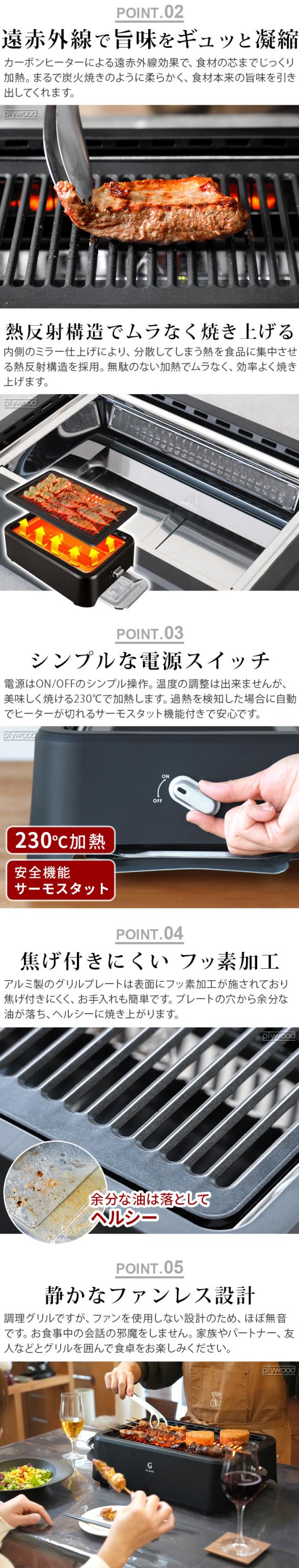 | 本体:PBT 樹脂 フィルター・オイルドリップトレー:ステンレススチール グリルプレート:アルミニウム(テフロン加工) |