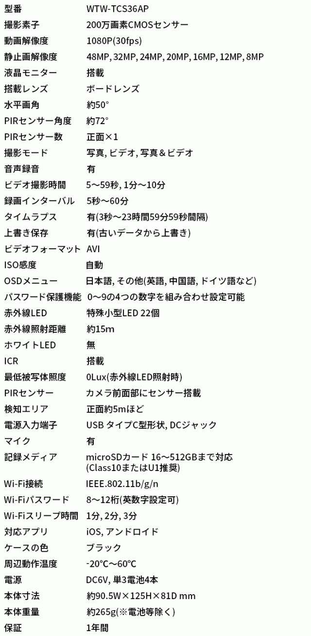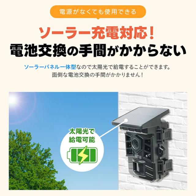 ■ WTW-TCS36AP | 200万画素赤外線搭載ソーラーパネル一体型トレイルカメラ【監視カメラ】【防犯カメラ】