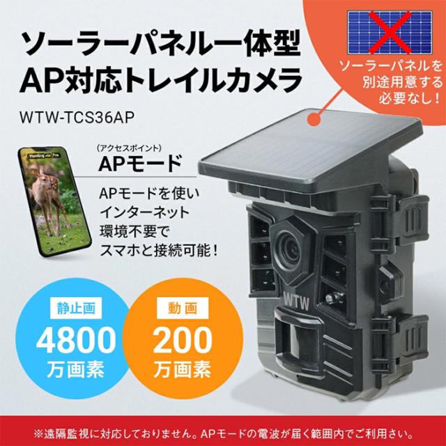 WTW-TCS36AP | 200万画素赤外線搭載ソーラーパネル一体型トレイルカメラ【防犯カメラ】【監視カメラ】【トレイルカメラ】【屋外対応】【AP接続】【塚本無線】