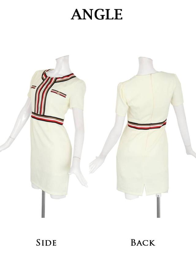 キャバ ワンピース ワンピ キャバワンピース キャバワンピ レディース パーティードレス Belsia 襟付き ツイード 袖付き