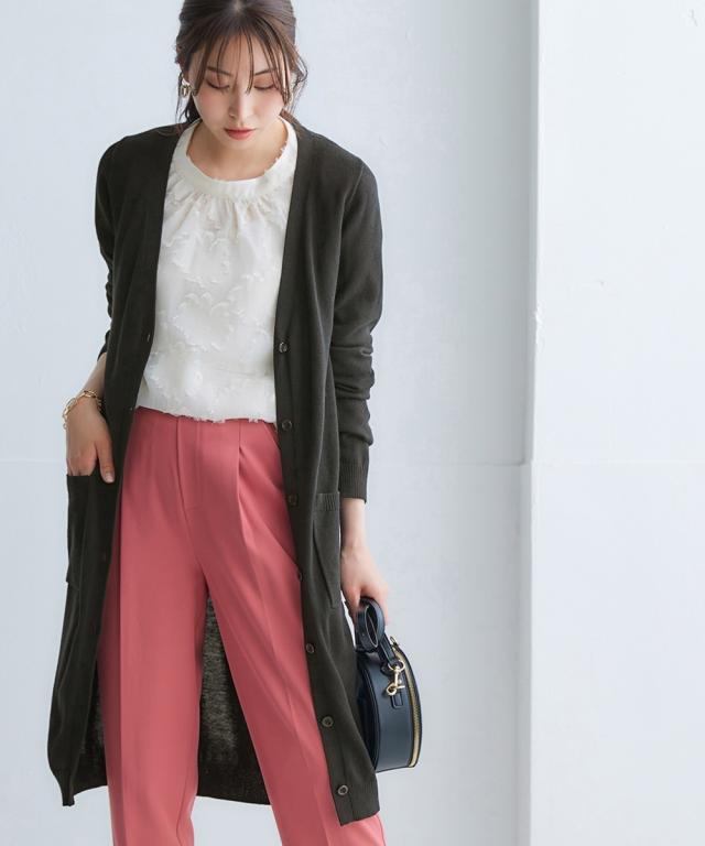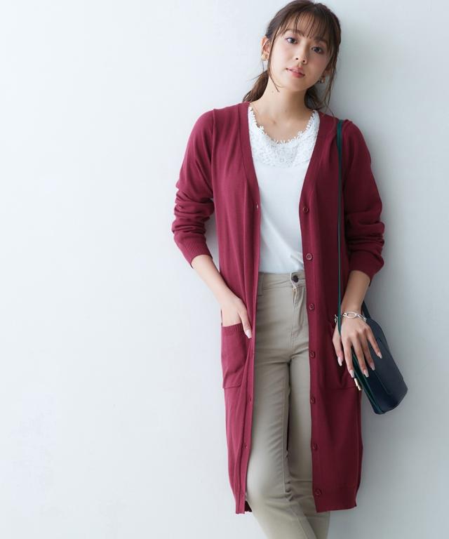 着るだけでほっそり、長め丈で体型カバーと華奢魅せが叶う万能カーディガンです。