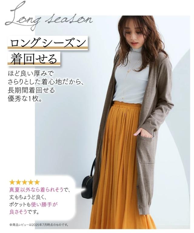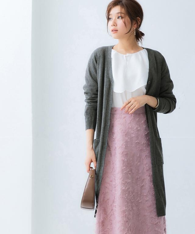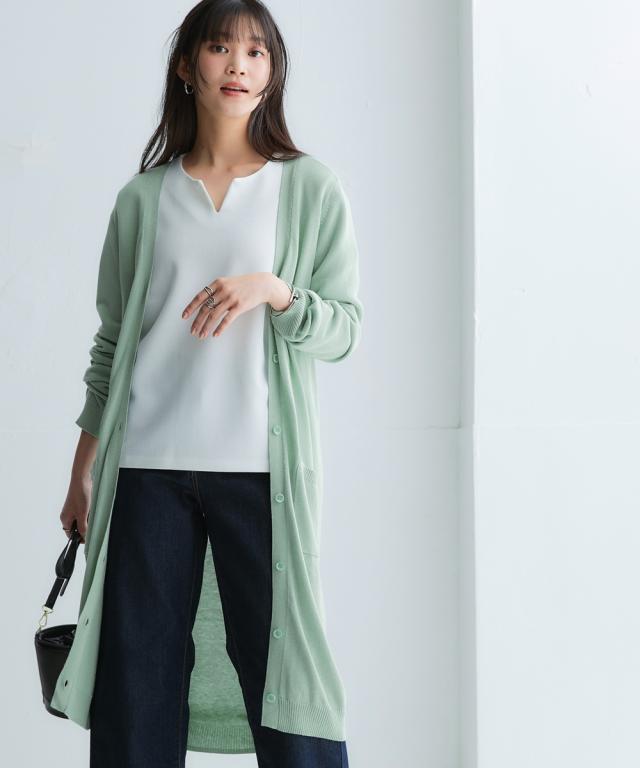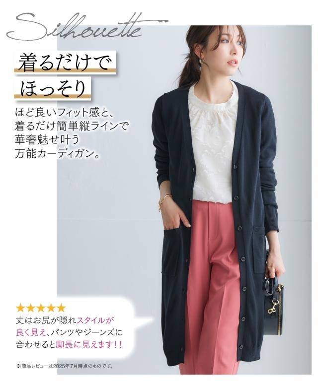 着るだけでほっそり、長め丈で体型カバーと華奢魅せが叶う万能カーディガンです。