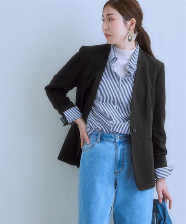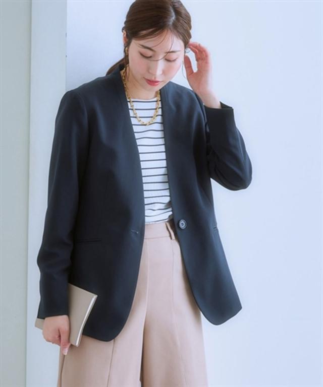 品質=[表地]ポリエステル88%・ポリウレタン12%(織物 ダブルクロス) [裏地]ポリエステル100%(身頃:織物 袖:カットソー) [裏地]有(総裏) 前ボタン開 袖口スリット 後ろベンツ ポケット前2 原産国:中国製 洗濯表示:洗濯機OK ネット使用
