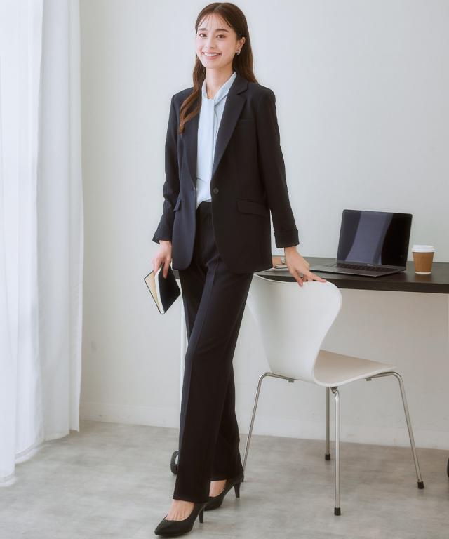 【レディーススーツ】タテヨコストレッチテーラードパンツスーツ(ジャケット+ストレートパンツ) トール丈