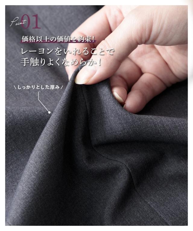 品質=[表地]ポリエステル65%・レーヨン30%・ポリウレタン5%(平織) [裏地]有(ジャケット:背抜き パンツ無) ジャケット:肩パッド有(取外し不可) 前ボタン開 ポケット前2・左胸・左内 袖口スリット 後ベンツ パンツ:前ファスナー内ボタン付ホック開 ウエスト後ゴム入 ポケット両脇・後飾り ※この商品は2点同サイズのみで販売します。※LLサイズから五面体仕様です。 原産国:中国製 洗濯表示:洗濯機OK ネット使用