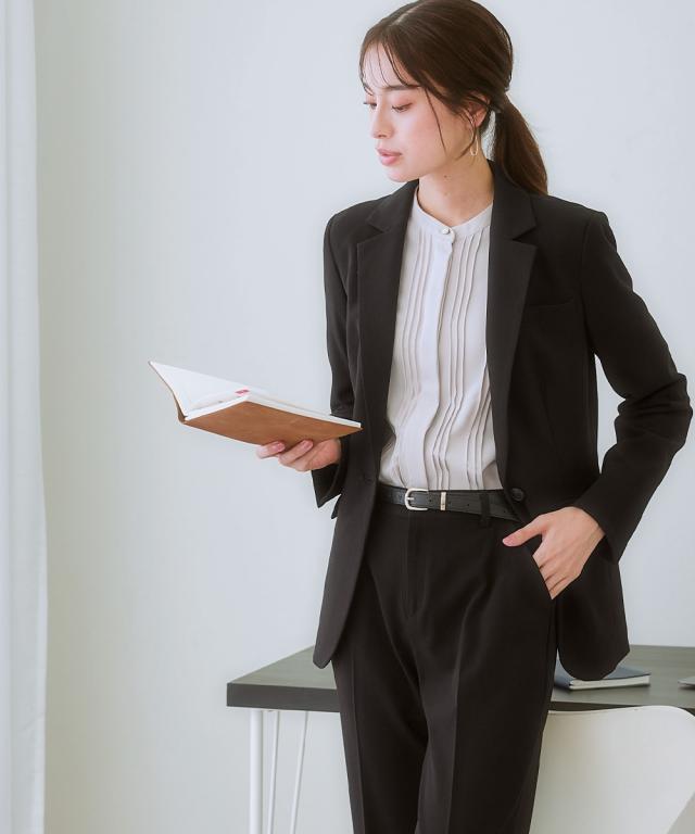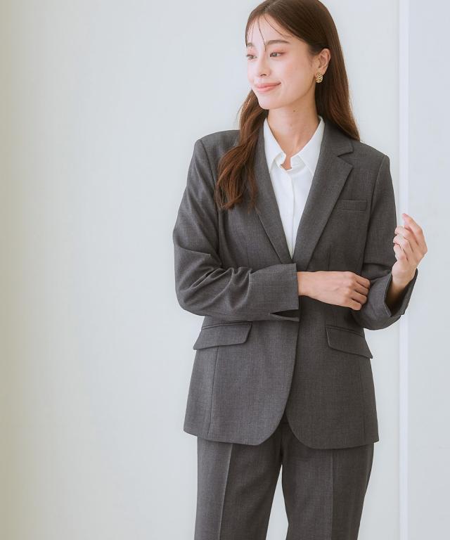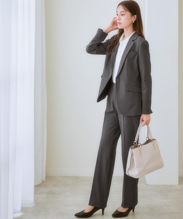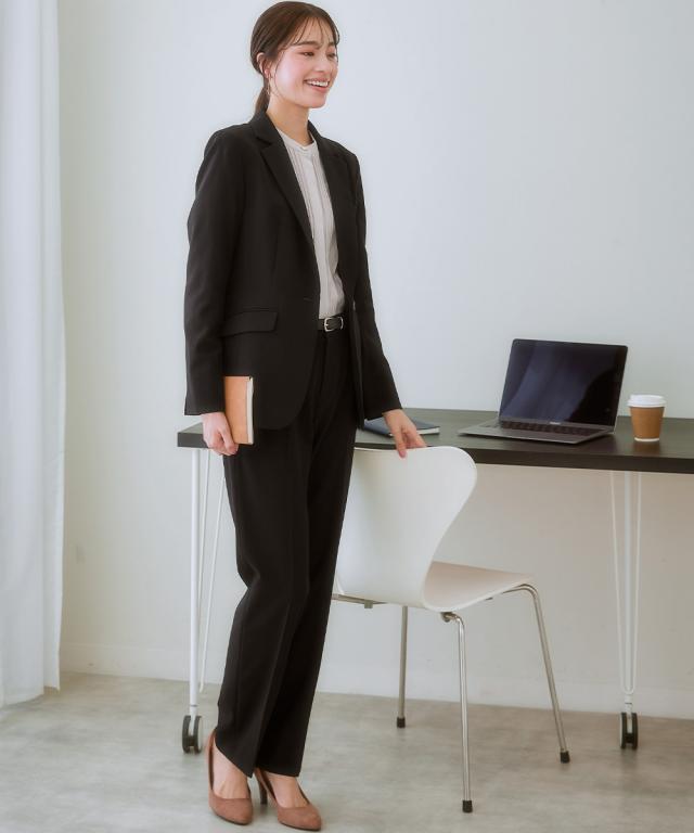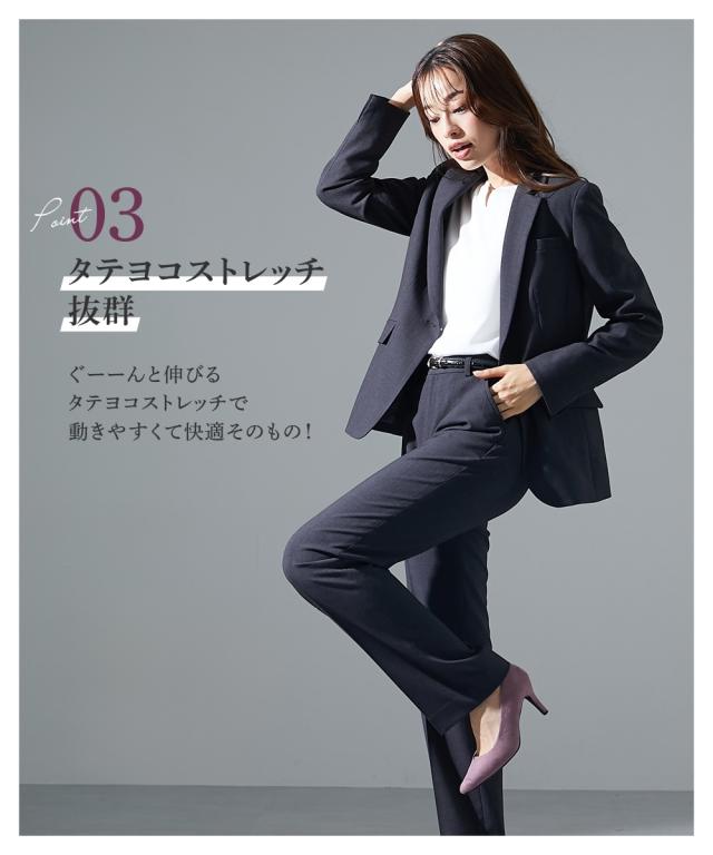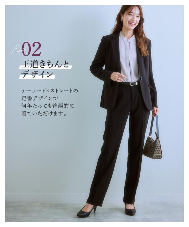 【レディーススーツ】タテヨコストレッチテーラードパンツスーツ(ジャケット+ストレートパンツ) トール丈