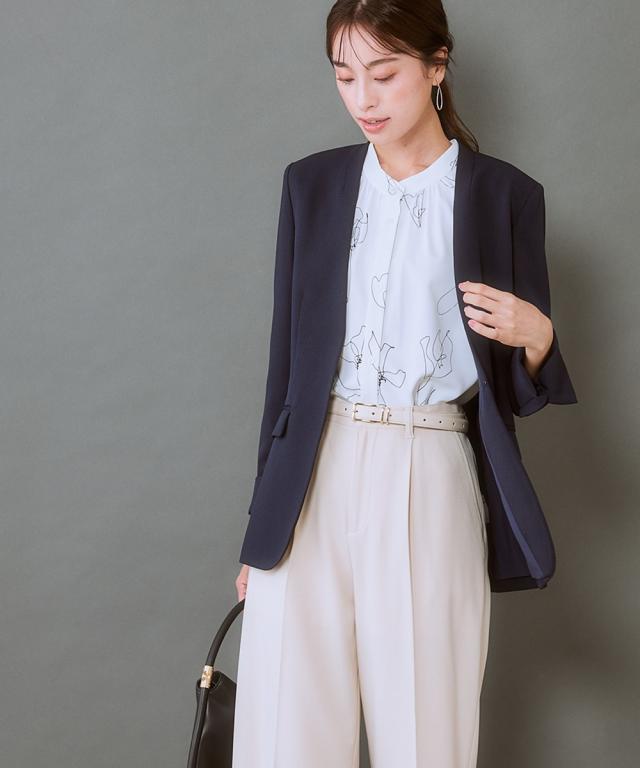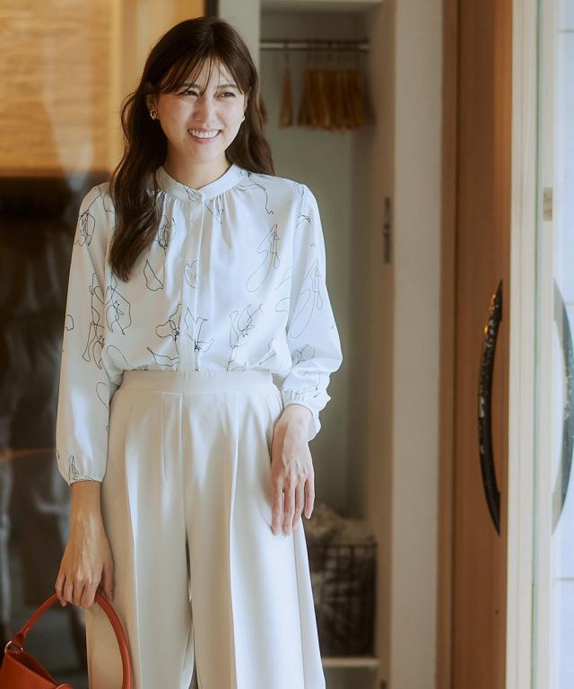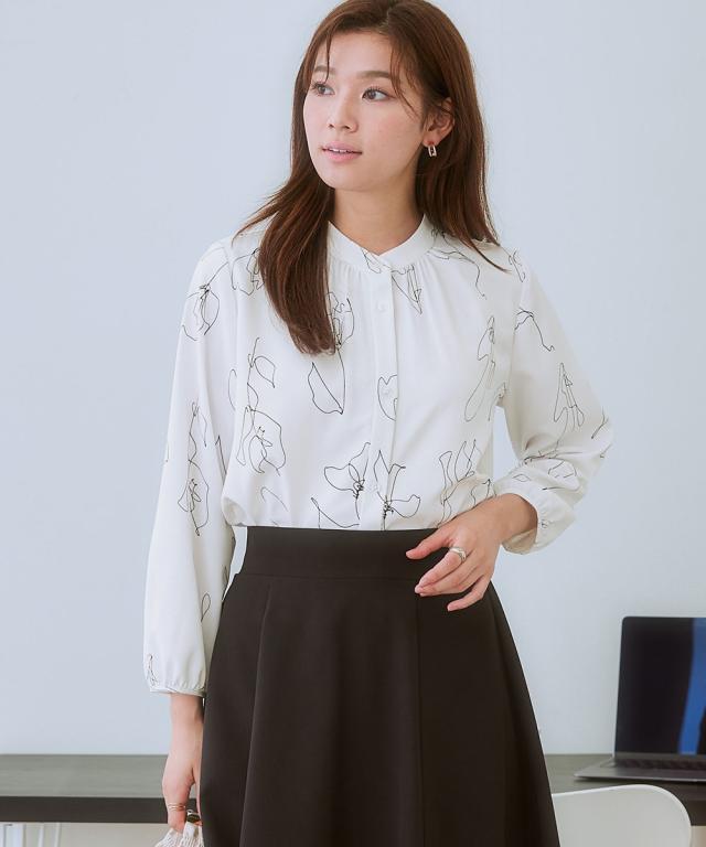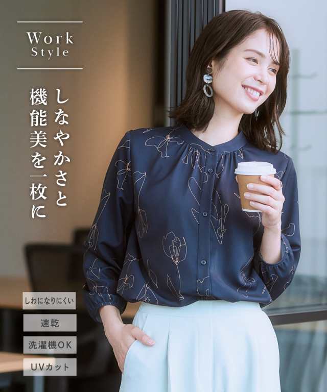 【繊細な線画が美しいブラウス】無地ライクに使えながら、無地より華やぐ控えめな主役アイテム。ほんのり華やかさがほしい日にぴったり。■ポイント ・印象的なアートフラワーの柄はオフィスやお出かけに華やかにブラッシュアップ。 ・滑らかでとろみのあるトレッチパウダーサテンシリーズ。■デザイン ・筆で書いたような線花柄が印象的なプリントブラウス。■素材 ・働く女性の毎日をサポートする「しわになりにくい、速乾、洗濯機OK、UVカット」の優秀機能素材。 ・光沢感とストレッチ感のあるパウダーサテン生地。 ・UVカット機能付き。■おすすめのスタイリング ・パンツやスカートなどシンプルボトムスに合わせるだけでコーデが完成。〜7days Life Styling〜 仕事の日、休日、イベントの日まで、 働く女性の毎日を商品やコンテンツを通して、 自分らしく快適でいられる“働く服改革”をサポートします。