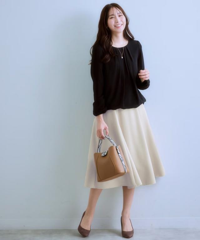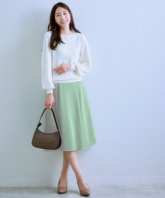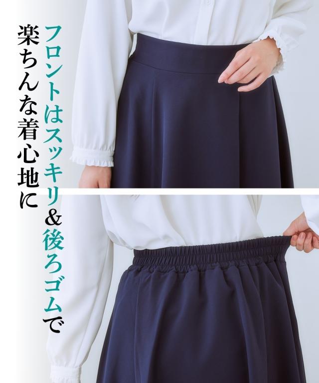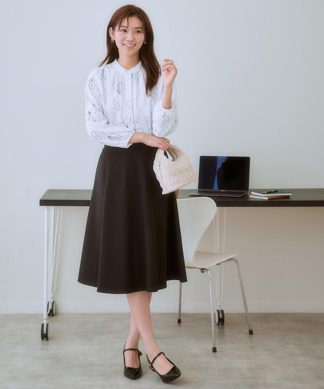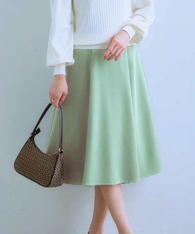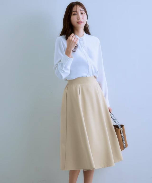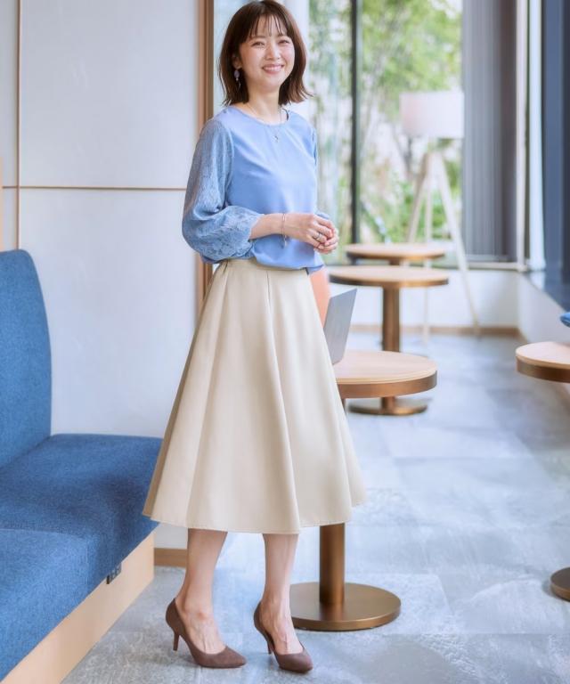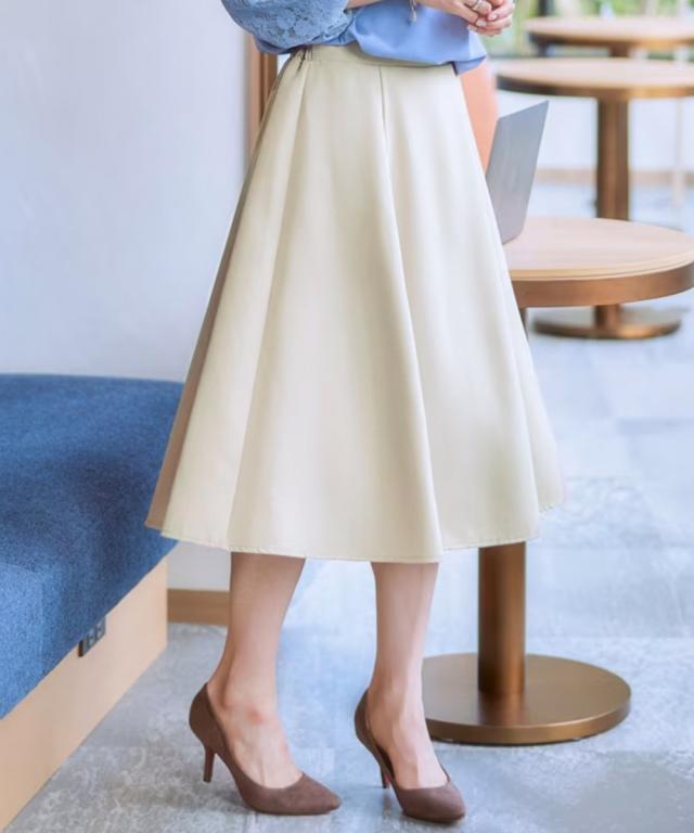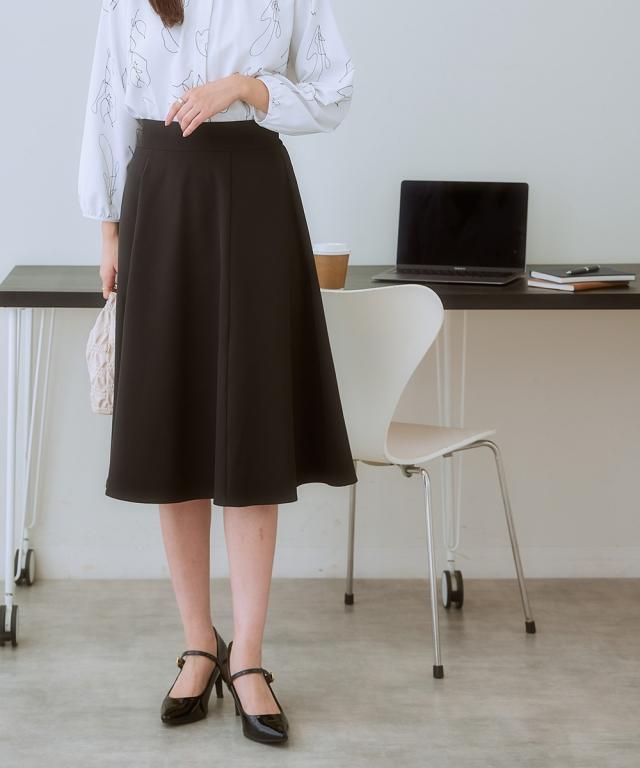 【立体感が美しい、ひざ下丈フレアスカート】脚をほどよく隠しながら、ドラマティックなシルエットでコーデを華やかに。■ポイント ・どこから見ても美しい6枚ハギ立体デザインで体型カバーする、ドラマティックフレア。 ・ひざ下を美しく見せる丈感。■デザイン ・広がりすぎないきれいな落ち感とフレアシルエットで毎年人気のスカート。 ・ウエストは後ろゴムで着心地楽ちん。■素材 ・ほどよく肉厚なのにとろみ感と落ち感があり、きれいなシルエットがつくれる素材。 ・通年使えるダブルクロス素材。■おすすめのスタイリング ・長すぎないコンパクトなジャケットと合わせると好バランスに。 ・フレアシルエットなのでトップスインや裾バルーンのブラウス合わせもおすすめ。〜7days Life Styling〜 仕事の日、休日、イベントの日まで、 働く女性の毎日を商品やコンテンツを通して、 自分らしく快適でいられる“働く服改革”をサポートします。