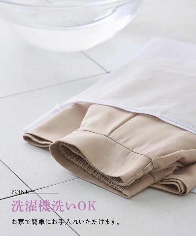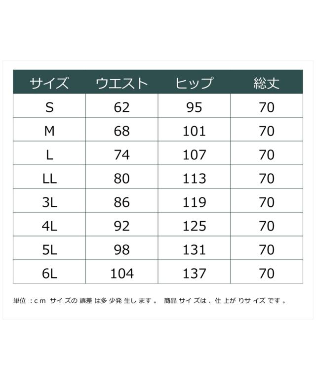 品質=【表地】ポリエステル90%・ポリウレタン10%【裏地】ポリエステル100%(織物)ウエスト後ゴム入り 原産国:中国製 備考:洗濯機OK ネット使用 ※単位:cm ※サイズの誤差は多少発生します。 ※商品サイズは、仕上がりサイズです。