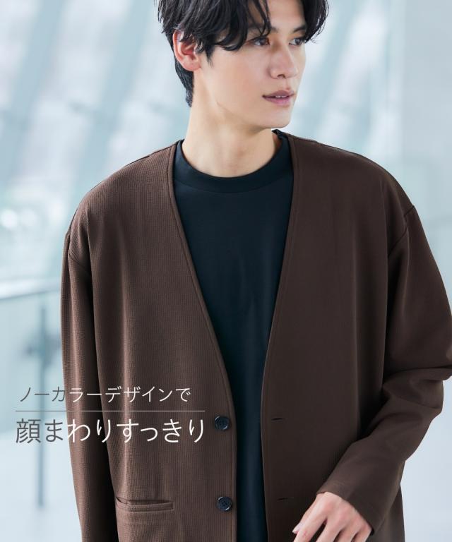 ジャケット アウター メンズ ふくれ織風 カットソー ノーカラー セットアップ 可能 洗える ウォッシャブル M/L/LL